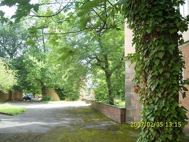 Vorne der Anbau mit Außentreppe--der Wichernsaal...