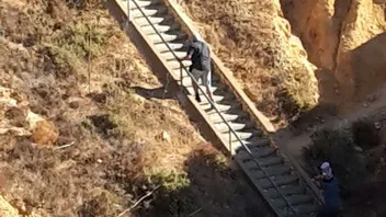 (von hinten und in der Mitte der Treppe, von denen es sehr, sehr viele an diesem Klippenort gab !!!)